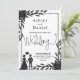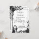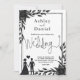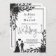 This elegant black-and-white wedding invitation is perfect for a modern wedding. The simple design features elegant black calligraphy, a chic black frame, and a bride-and-groom illustration on a clean white background. The invitation card includes the wedding details on the back instead of paying for a separate enclosure card.
