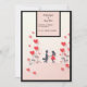 This wedding invitation showcases a charming silhouette of a couple holding hands, surrounded by vibrant red hearts and delicate floral accents. Set against a soft pastel pink background, it evokes a sense of romance and whimsy. Perfect for love-themed designs, Valentine's Day, anniversaries, or wedding-related creations, this piece combines playful elegance with heartfelt sentiment.