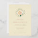 This elegant foil invitation features a soft cream background with a delicate floral arrangement at the centre, showcasing a blush pink rose surrounded by smaller flowers and green foliage. The design employs a classic serif font for its text, creating a sophisticated and formal look that is perfect for weddings. The layout is balanced and symmetrical, with ample negative space enhancing the overall romantic theme. Ideal for couples seeking a timeless and refined aesthetic, this invitation sets the tone for a memorable celebration.