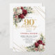 Romantic Deep Red Gold Floral 90th Birthday Invite
