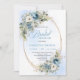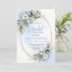 Romantic Dusty Blue Floral Gold Frame Bridal Showe Invitation