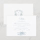 This romantic and classic design features a delicate ornament of elegant line drawn roses, mixed flowers, lily-of-the valley, foliage and vines in a timeless dusty blue color. Also included are editable text fields, custom calligraphy text and on the back, a stunning floral crest with space for your initials.