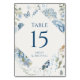 Romantic Dusty Blue Watercolor Floral Wedding Table Number