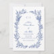 Set the tone for your romantic celebration with this stunning dusty blue wedding invitation, featuring delicate hand-drawn blue wildflower and botanical foliage arranged in a lush, organic wreath frame. Coordinate with matching RSVP cards, details cards, and thank you notes to create a cohesive wedding stationery suite that leaves a lasting impression on your guests. Ideal for couples seeking a blend of rustic elegance and vintage romance with a modern, customisable twist.