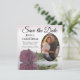 These beautiful save the date cards are the perfect way to let your friends and family know about your upcoming wedding. They feature an elegant design with a single long stemmed dusty rose or mauve pink coloured rose reflecting in a pool of water with waves and ripples with your photo in an oval shaped frame. The caption reads Save the Date with space for your names, the date, and location. The back is a marbled dusty rose colour.