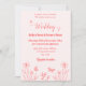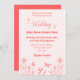 Unique simple wedding invitation featuring romantic and elegant coral pink flowers on light pink background