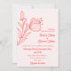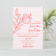 Unique simple wedding invitation featuring romantic and elegant coral pink flowers on light pink background