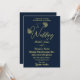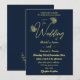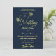 Unique simple wedding invitation featuring romantic and elegant gold butterflies on navy background