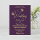 Romantic elegant gold butterflies purple invitation
