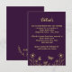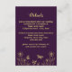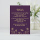 Unique simple wedding enclosure card featuring romantic and elegant gold flowers and a butterfly on purple background