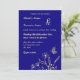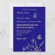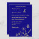 Unique simple wedding invitation featuring romantic and elegant gold flowers on royal blue background