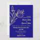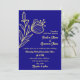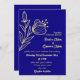 Unique simple wedding invitation featuring romantic and elegant gold flowers on royal blue background