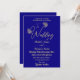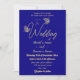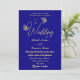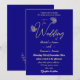 Unique simple wedding invitation featuring romantic and elegant gold flowers on royal blue background