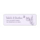 Unique simple wedding return address label featuring romantic and elegant mauve flowers and butterflies on light purple background