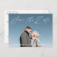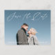 Stylish and elegant save the date photo announcement postcards feature your favorite engagement photo with "Save The Date" in a modern calligraphy script font overlay. Personalize the chic save the date announcements by adding your names and wedding details.