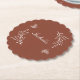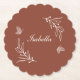 Unique simple wedding paper coaster featuring romantic and elegant white flowers and butterflies on terracotta background