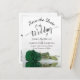 These beautiful postcards are a great way to let your friends and family know to save the date for your upcoming wedding. The design features a gorgeous long stemmed emerald green coloured rose lying on its side reflecting in a pool with waves and ripples. The text features lacy script calligraphy. The back has a cute graphic reading "pencil us in" with space for a custom note which can include your wedding website.