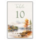 Set the tone for your fall wedding with this romantic Wedding Table Number, featuring a serene lake and mountain scene layered over rustic linen print. Perfect for cosy outdoor wedding, autumn elopements, or destination weddings by the water. Customisable with your names, dates and location - part of our Fall Wedding Collection fo a coordinated stationery suite.