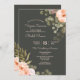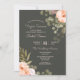 A beautiful, romantic invitation with a deep olive-green background featuring bursts of pink-coral flowers and foliage. (<a href="https://www.freepik.com/free-photos-vectors/brochure">Brochure vector created by BiZkettE1 - www.freepik.com</a>). <br/><br/>The card is easy to customise with your wording, font, font colour, paper shape options and choice of six paper types.<br/><br/>Not exactly what you're looking for? All our products can be custom designed to meet your needs at no extra charge.<br/><br/>Simply contact us at askcottonlamb@gmail.com.<br/><br/>Coordinating products available: Romantic Floral Thank You Card<br/>Want something more? Just ask us!"