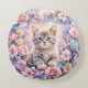 Romantic Floral Kitten Round Throw Pillow