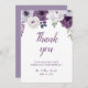 Romantic Floral Purple Silver Personalise Wedding Thank You Card