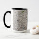 Delicate photo of a heart drawn on a sandy beach. Photo covers the major part of this mug. Opposite of the handle, there is a semitransparent vertical name banner. Banner is black, and text is light grey to light brown.