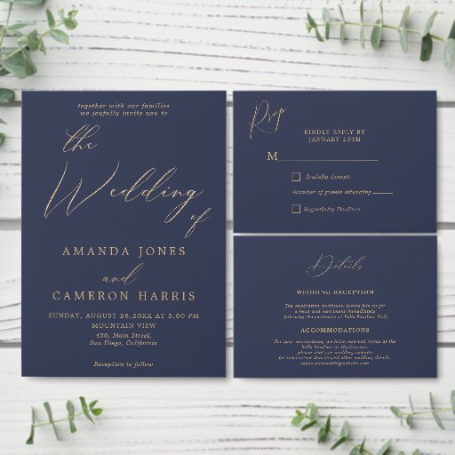 ROMANTIC GOLD CALLIGRAPHY NAVY BLUE WEDDING Designed by R.M. Inoka Shiromani Rathnayaka