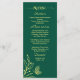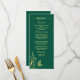 Unique simple wedding menu featuring romantic and elegant gold flowers on emerald green background