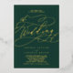 This romantic gold foil emerald frame wedding invitation is perfect for a simple wedding. The modern classic design features fancy swirls and whimsical flourishes with gorgeous elegant hand lettered gold foil stamped typography and a formal foil frame on a dark emerald green background.