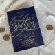 This romantic gold foil navy flourish wedding invitation is perfect for a simple wedding. The modern classic design features fancy swirls and whimsical flourishes with gorgeous elegant hand lettered gold foil pressed typography on a dark blue background.