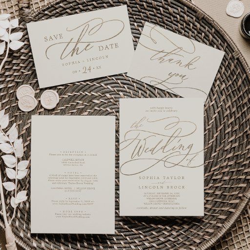 Romantic Gold and Ivory Calligraphy CollectionDesigned by Miriam Kokolo