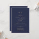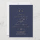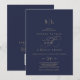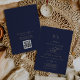 Romantic Gold Navy Monogram QR Code Back Wedding Invitation
