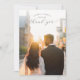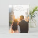 This wedding thank you card features a romantic scene with two silhouetted figures walking hand in hand against an urban sunset backdrop, creating a warm and intimate atmosphere. The design uses a golden and amber colour palette, enhanced by soft blues and greys for contrast, giving it a contemporary yet timeless feel. Elegant script and print fonts add sophistication, while the phrase "thank you" is elegantly written in flowing cursive, conveying gratitude and affection. Perfect for expressing heartfelt thanks after your special day, this card combines artistic photography with digital enhancement to capture a dreamy, serene moment.