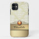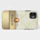 Romantic golden look damask personalizable phone case with name, golden look ribbon, fire opal, and your or your loved one's name