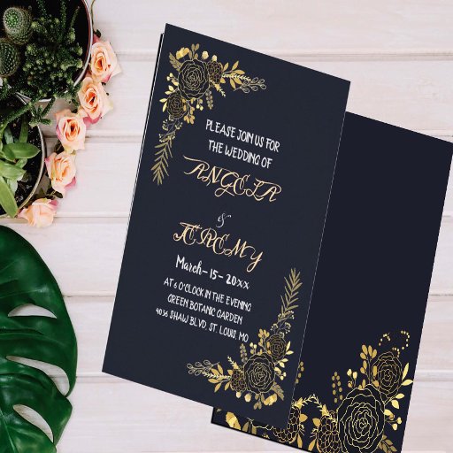 Romantic golden Floral Navy Blue card Designed by burak habib