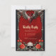 Romantic Gothic icon: heart, rose, skull. RSVP Card