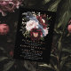 This goth floral raven wedding design features a simple, moody watercolor illustration of a raven perched on a bouquet. Perfect for a timeless romantic goth wedding or other special occasion. It is beautifully suited to a spooky-themed event in the fall or a unique winter event in a casual or formal setting.