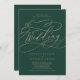 This romantic green calligraphy flourish wedding invitation is perfect for a simple wedding. The modern classic design features fancy swirls and whimsical flourishes with gorgeous elegant hand lettered faux champagne gold foil typography.