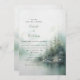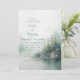 Peaceful, natural, and deeply romantic—this wedding invitation captures the quiet magic of a forest celebration. Set against a soft green landscape of misty evergreens and layered trees, it evokes the calm and wonder of nature’s embrace.
