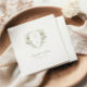Elegant wedding napkins, embellished with a stunning green and white watercolor floral monogram crest and classic calligraphy.