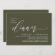 Mark the beginning of your forever with elegance using our romantic contemporary rustic olive green theme wedding elopement happily ever after lunch, brunch, reception dinner party celebration invitation card, "Happily ever after dinner". Perfect for couples extending their joyous occasion, this invitation exudes sophistication with a hint of playfulness, setting the stage for a memorable event. Adorned with a timeless modern script design theme, it adds a touch of refined charm to your festivities. Crafted by TeeshaDerrick, this invitation promises to beautifully capture your love story.
