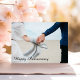 Shows a lovely, fluid, colourful photo of a couple holding hands and "Happy Anniversary." A beach is in the background. The back reads "Thanks for being on the journey of life with me. I love you." All text can be customised.