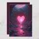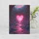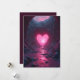 A heart-shaped cave frames a glowing pink sunset, creating a romantic and surreal atmosphere. Rocky walls and a wet path guide the viewer's eye towards the vibrant horizon.