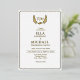 Your wedding invitation framed in by shimmering foil and sealed with a crest with your initials.