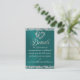 This romantic design features a teal background with glitter borders, a delicate silver scroll heart, details for more information on the front and QR code and monogram placeholder on the back. Also available with different coloured backgrounds for your wedding theme colours. (Glitter is simulated in the artwork). Designed to coordinate with the "Romantic Scroll Hearts & Glitter Wedding" Collection. To change details, click «Personalise». To move the text or change the text size, font, or colour click «Click to customise further»