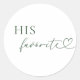 Romantic Heart Script His Favourite Wedding Favour Classic Round Sticker
