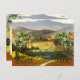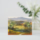 An original Save the Date postcard featuring a fine art painting of an Italian landscape in festive colours.