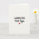 This greeting card has a simple with an off-white background that has a light, subtle texture. Centered on the front is the message “I WANNA KISS YOUR lips,” with “I WANNA KISS YOUR” in black, all-caps block letters that feel direct and clear. The word “lips” switches to a softer black script style, like a quick handwritten note, and it sits right after the rest of the phrase. Just below the text is a single small heart in deep red, placed like a sweet little sign-off. There aren’t any other objects or characters, which keeps your attention on the message and the heart. The overall look feels warm, close, and romantic, making it great for a partner or someone you really like