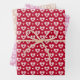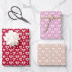 A set of lovely wrapping paper sheets featuring a romantic lace inspired heart pattern design in red, pink and peach, perfect for your Valentine's Day gift wrapping needs.