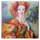 ROMANTIC LADY WITH PEACOCK FEATHER CERAMIC TILE
